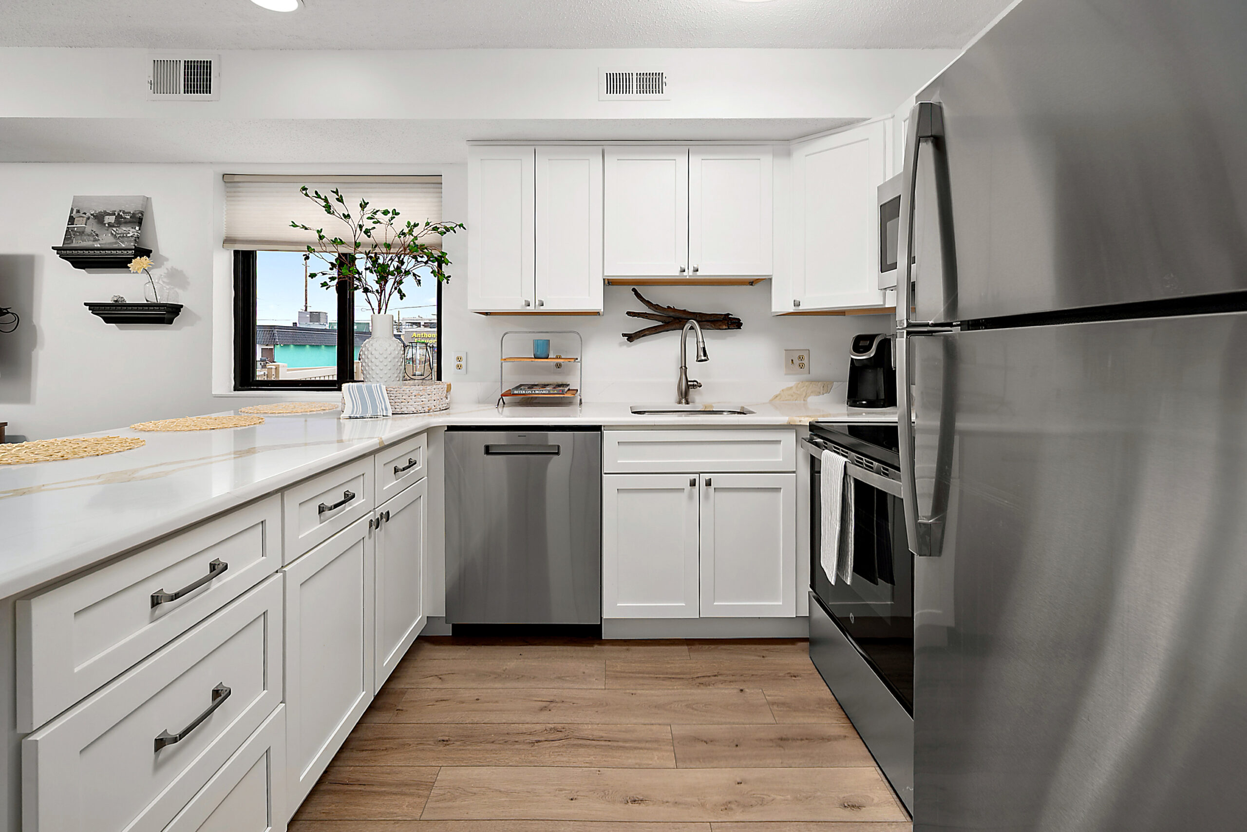 Enjoy coastal living in this beautifully updated first-floor east-end unit, perfectly situated within walking distance to the beach. This inviting residence offers both convenience and comfort, making it an ideal retreat. Inside, the upgraded kitchen features stainless steel appliances, modern countertops, and updated cabinetry, creating a stylish and functional space for cooking and entertaining. The home also boasts durable luxury vinyl plank (LVP) flooring, adding a clean, coastal look while being easy to maintain. Relax in the bright living area, which opens to an exterior balcony, perfect for enjoying the ocean breeze with your morning coffee or unwinding after a day in the sun. After a day at the beach, take advantage of the convenient outdoor shower, ideal for rinsing off sand before heading inside. Offered in a very affordable price range for a beachside property, this charming coastal unit provides an excellent opportunity to own a place near the ocean without stretching your budget. With its east-end location, thoughtful upgrades, and easy beach access, it’s the perfect blend of relaxation, convenience, and coastal lifestyle. For More Information on This Listing or to View All of Our Listings, Go to OceanCityMDRealEstateSales.com – Contact Kevin or Monica Today at 410-430-4236 with Any Questions or to See This Home!