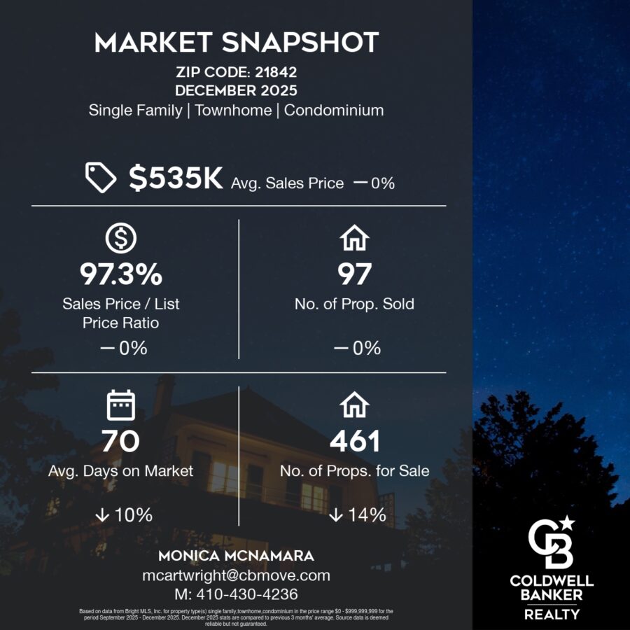 Below you will find the Coldwell Banker Market Snap Shot report for December 2025. This Snap Shot will be featured in our blog every month so our readers can stay up to date on the changes and trends in the Ocean City, MD Real Estate Market.